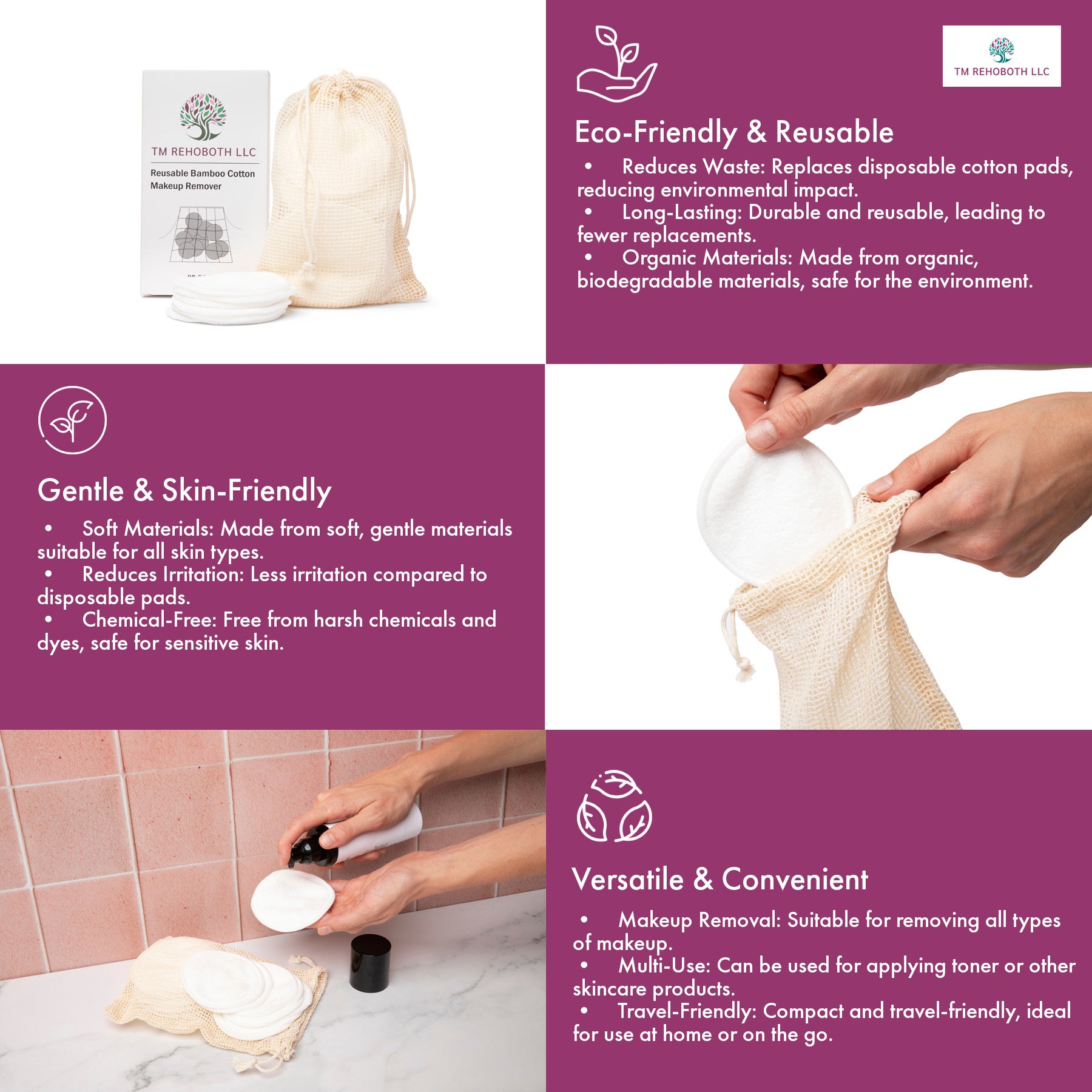 - Reusable and Sustainable Design: The TM Rehoboth reusable makeup remover pads, Eco-friendly organic bamboo cotton, 20-pack with laundry bag can be washed and reused up to 1,000 times, offering an economical solution to disposable cotton pads.